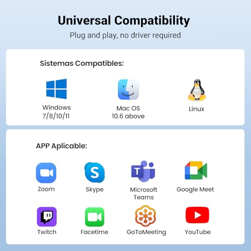 - Wide Compatibility & Multi Application: The webcam for laptop widely works with Windows 7/8/10/11, Mac OS 10.6, Linux, android and other systems, Perfect for Zoom/Skype/YouTube/Facetime/Twitch/Facebook/Meeting/Gaming/Streaming/Recording, and it supports compatibility with Switch 2 (Please bring your own USB C to USB adapter). Advanced technology, a wide range of applications, and better understanding of your needs
