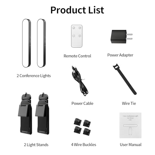 【Packing List and After-Sales Service】 Package includes: 2 video conference lights, 2 light stands, 1 remote control, 1 adapter, 1 cable, 1 wire tie, 4 wire buckles, 1 user manual. Our goal is to satisfy every customer, if you are not satisfied, we will provide 100% refund. yAyusi video conference lighting kit provides 24 months of after-sales service, if you have any questions, you can contact us at the first time